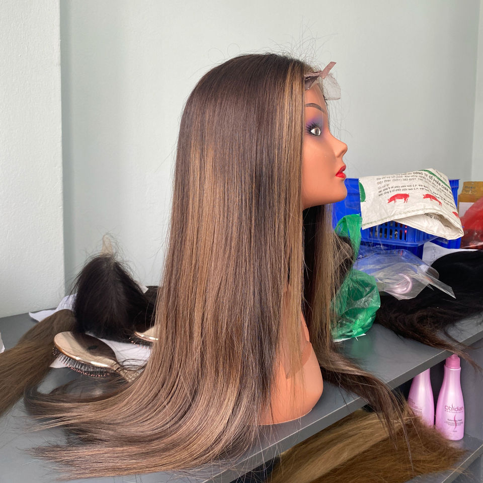 วิกผมลูกไม้เต็มศีรษะมนุษย์ผมตรงยาว30นิ้วเน้นเน้นเสียงเปียโนแบบ HD