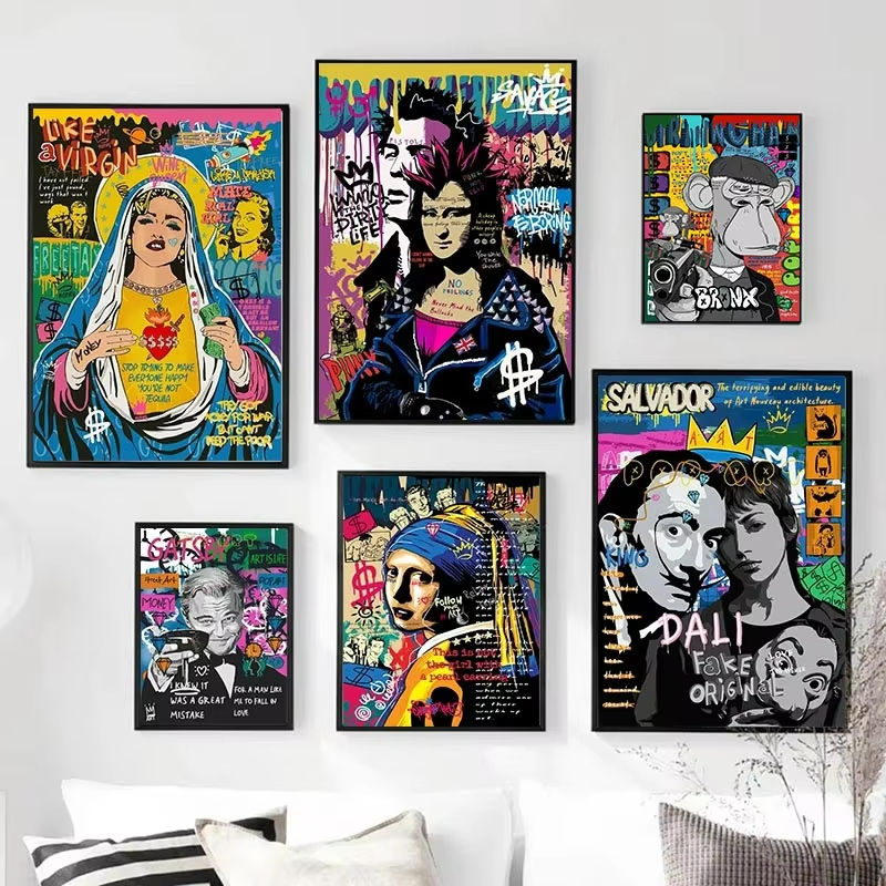 โปสเตอร์ศิลปะป๊อปพิมพ์ HD พิมพ์ลายลิงพังก์โมนาลิซ่าคนขับแท็กซี่ภาพวาดศิลปะนามธรรมผนังสำหรับห้องตกแต่งบ้าน
