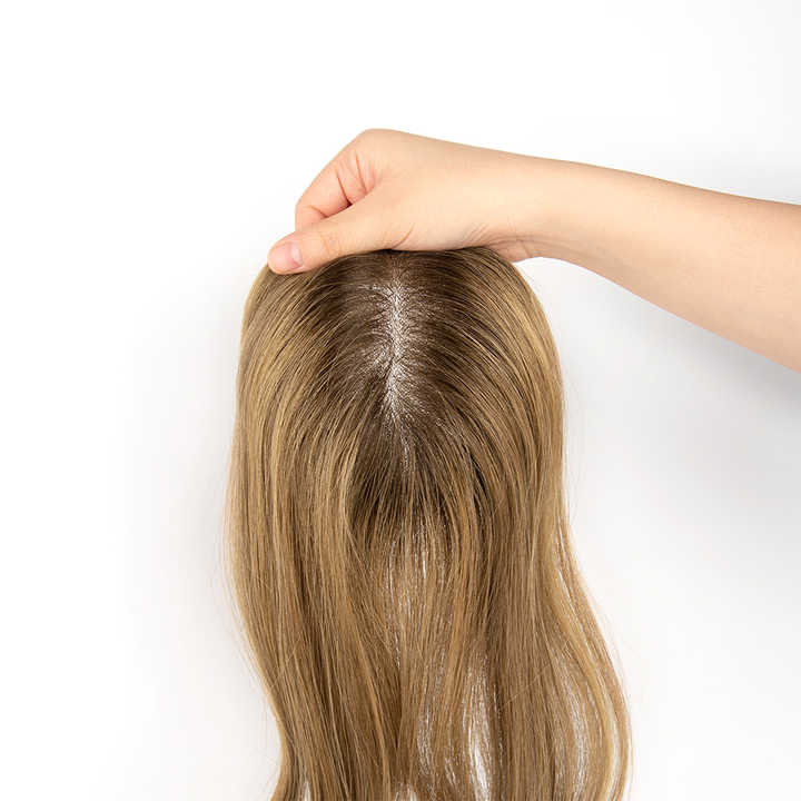 ท็อปเปอร์ผมแท้ HD Swiss Lace แบบโมโนเบส สำหรับผู้หญิง ผมเวอร์จินยุโรป เกล็ดผมเรียงตัวสวยงาม