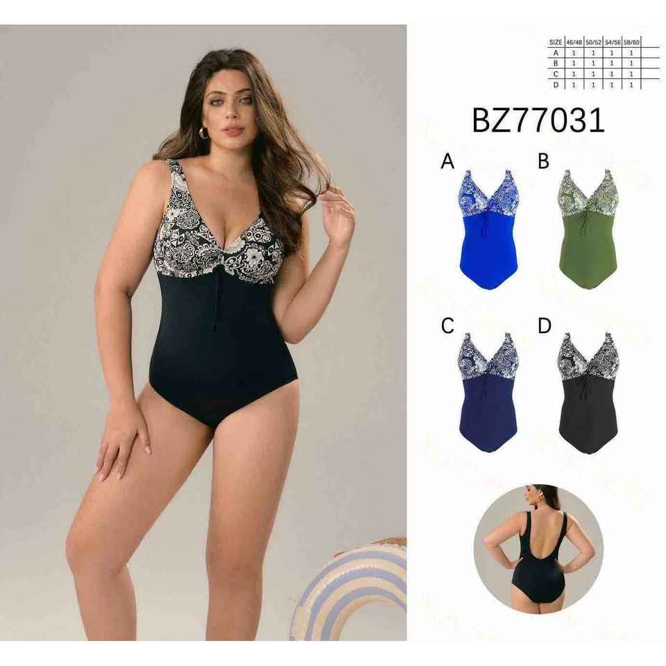 ชุดว่ายน้ำวันพีซสำหรับผู้หญิงไซส์ใหญ่ คอวี รัดรูปเก็บหน้าท้อง เปิดหลัง ชุดว่ายน้ำสำหรับฤดูร้อน ชุดชายหาด ขายส่ง รุ่นใหม่ BZ77031
