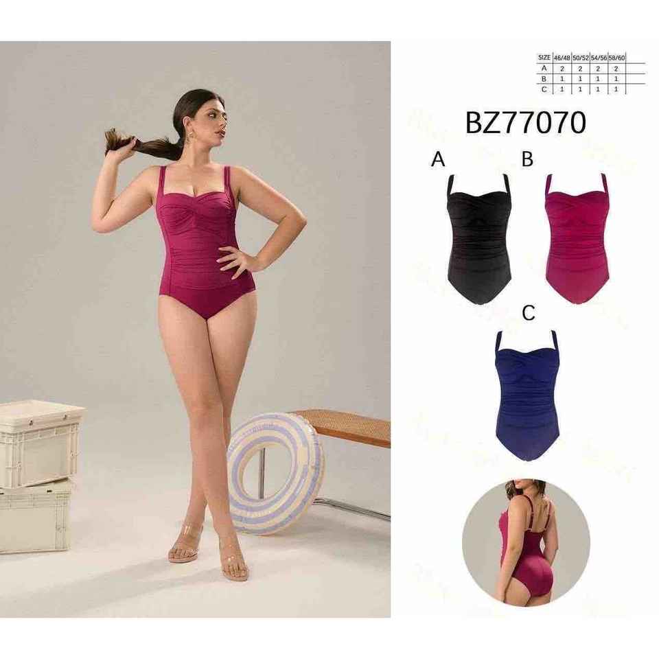 ชุดว่ายน้ำวันพีซสำหรับผู้หญิงไซส์ใหญ่ คอวี รัดรูปเก็บหน้าท้อง เปิดหลัง ชุดว่ายน้ำสำหรับฤดูร้อน ชุดชายหาด ขายส่ง รุ่นใหม่ BZ77070