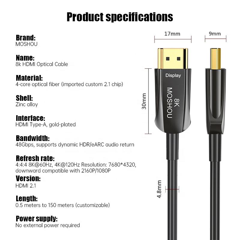HDMI 2.1 calble AOC ใยแก้วนำแสง8K 60Hz 4K 2K ความยาวที่กำหนดเอง odm/oem 2.2 HDCP ความเร็วสูง CL3และ2.3 earc สำหรับ PS5