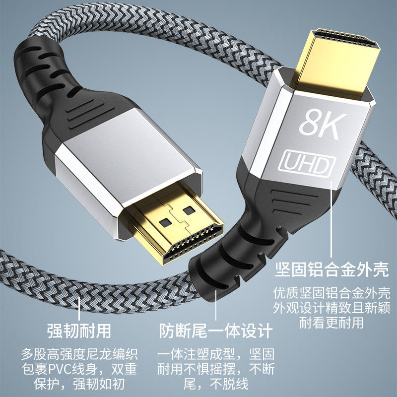 สาย HDMI 2.1 8K UHD 1.5M แบบถัก สำหรับทีวี คอมพิวเตอร์ จอภาพ โปรเจคเตอร์