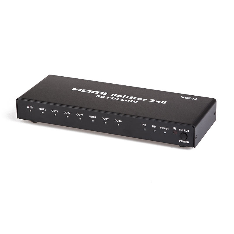 HDMI Splitter 2อินพุตเป็น8เอาต์พุต10Gbps Full HD 1080P 3D 1.4V สวิตช์ HDMI พร้อมรีโมทคอนโทรล IR