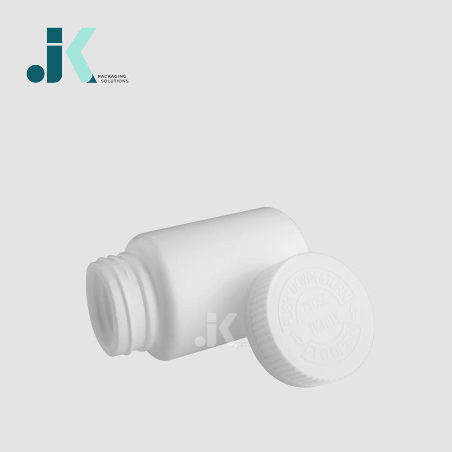 ขวด HDPE พร้อมฝาปิด CR ขนาด100มล. สีขาวพร้อมฟรีบรรจุภัณฑ์โลโก้สำหรับยา M0331ผู้ผลิตจากเวียดนาม