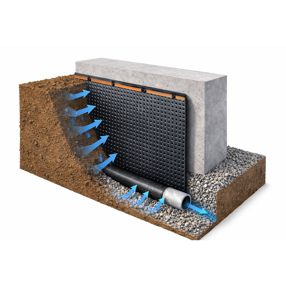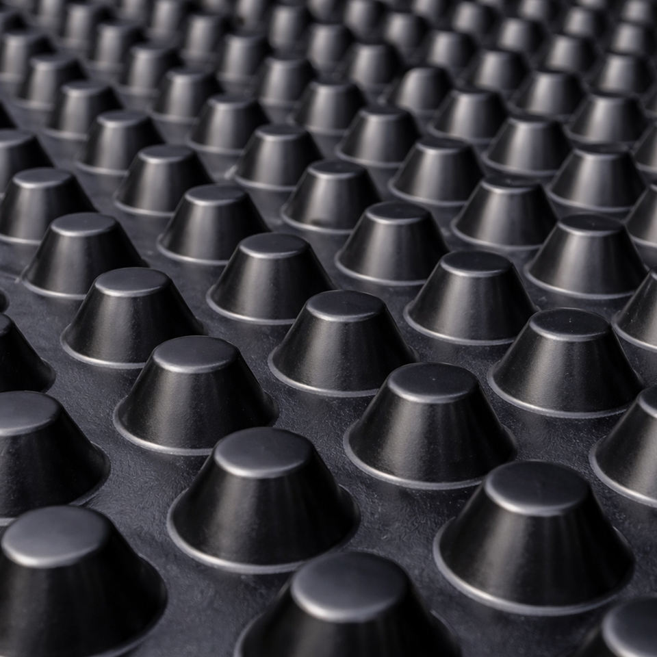 แผ่น HDPE แบบมีร่อง | แผ่นระบายน้ำกันน้ำที่ทนทาน | แผ่นเมมเบรนป้องกันห้องใต้ดินและระบายน้ำสำหรับพื้นภายนอกอาคาร