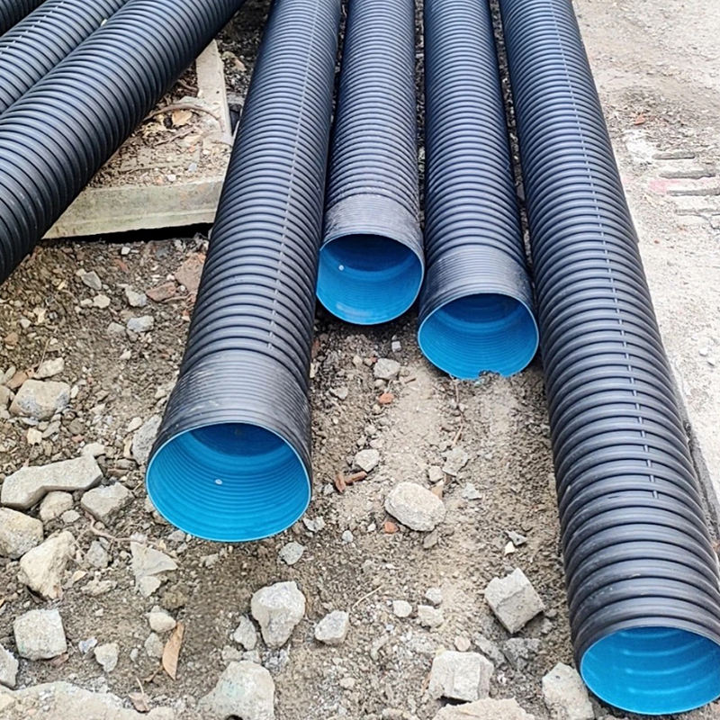 ท่อระบายน้ำแรงดันสูง HDPE แบบผนังสองชั้นลูกฟูก สำหรับโครงการควบคุมน้ำท่วมในเมือง ความจุน้ำไหลสูง