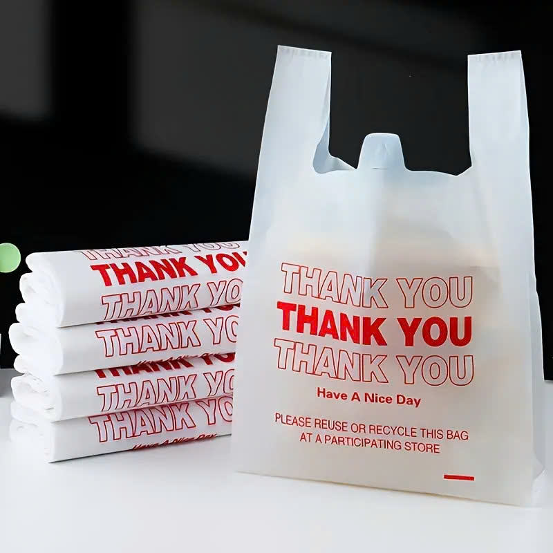 ถุงเสื้อยืด HDPE/LDPE กำหนดขนาดเองขายส่งจำนวนมากพิมพ์แบบกำหนดเอง