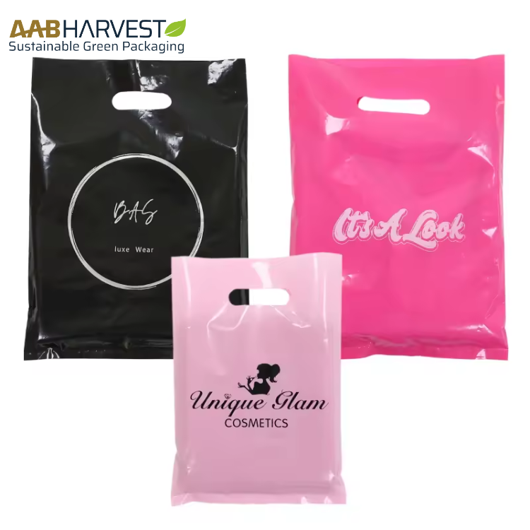 ถุงสินค้าวัสดุ HDPE/LDPE แบบมีก้นข้าง หูหิ้วแบบไดคัท แข็งแรง ทนทาน ไม่ขาดง่าย เหมาะสำหรับใช้ในซูเปอร์มาร์เก็ต ใช้งานได้หลากหลาย