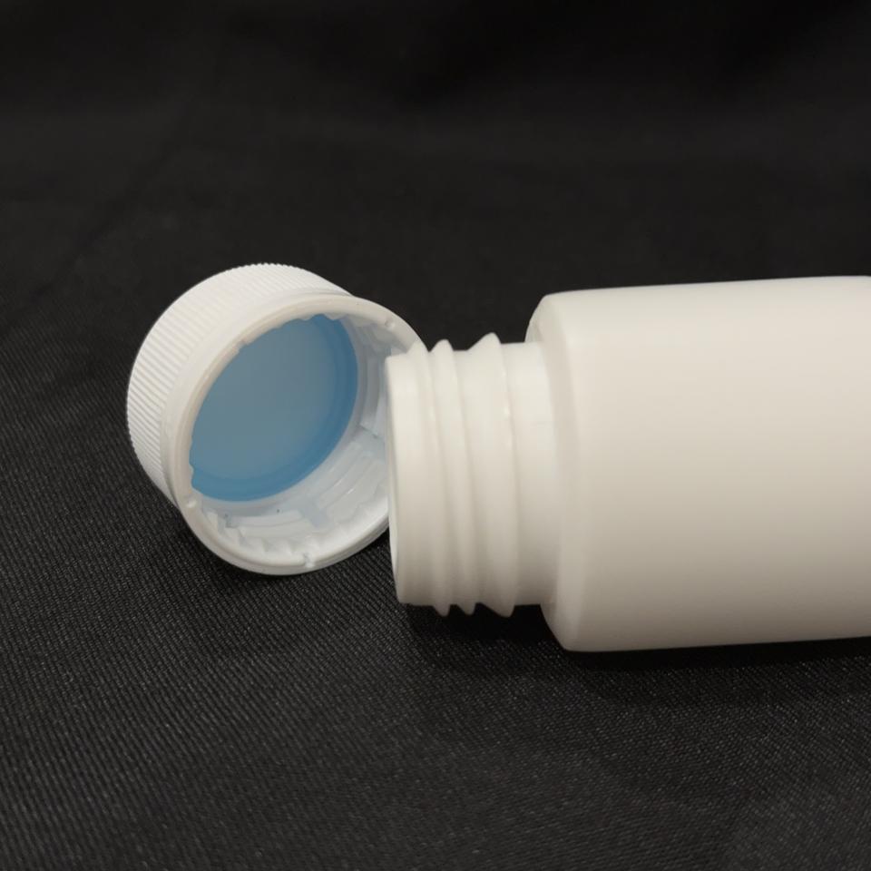 ขวดพลาสติก HDPE ขนาด 23-50 มล. ฝาแบบ APS ยี่ห้อ Crew Cap สำหรับบรรจุของเหลว ยา น้ำหนักเบา ทนทาน สีขาว รูปทรงกระบอก ใช้งานง่าย