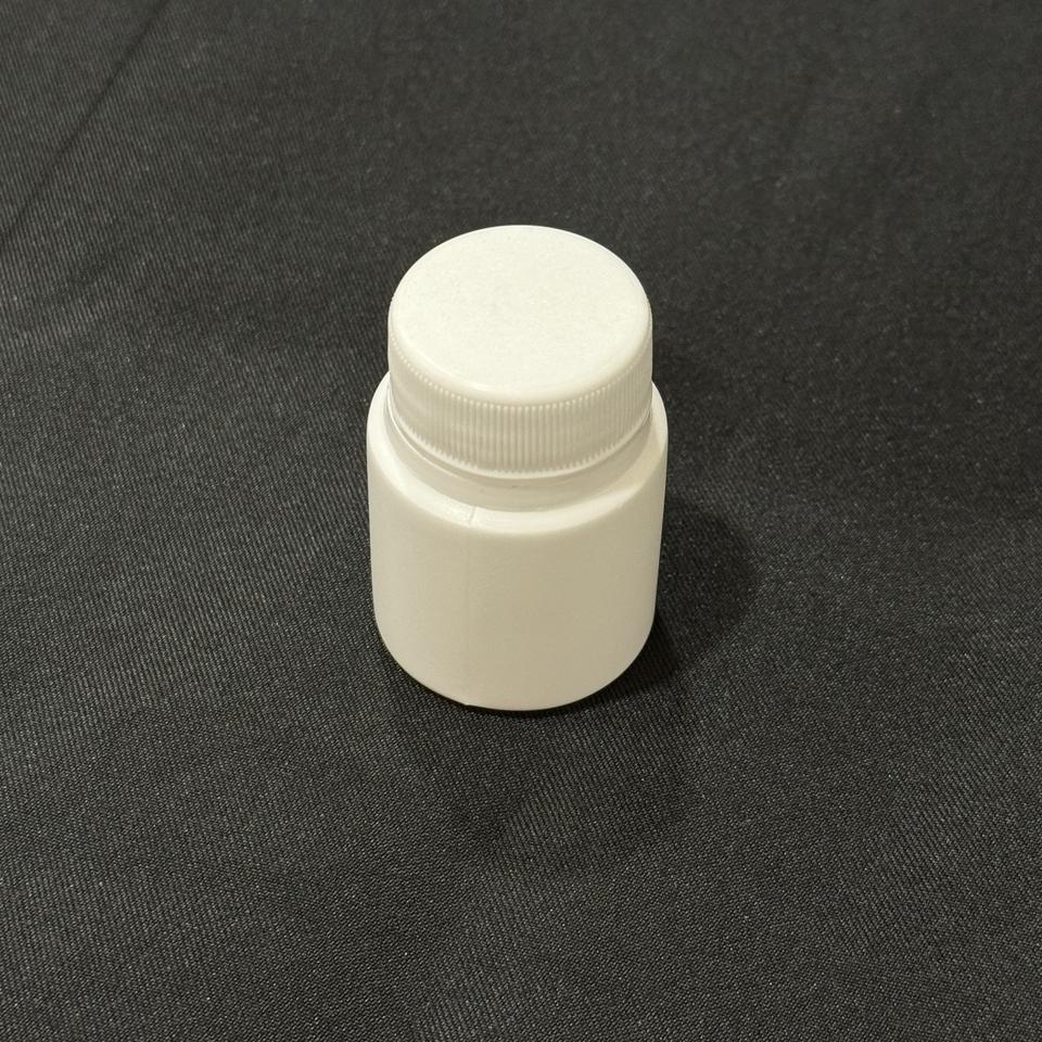 ขวดพลาสติก HDPE ขนาด 23-50 มล. ฝาแบบเกลียว บรรจุของเหลว ยา สีขาว น้ำหนักเบา ทนทาน รูปทรงกระบอก แบน