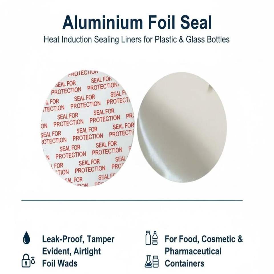 แผ่นปิดผนึกขวดพลาสติก HDPE แบบเหนี่ยวนำด้วยอลูมิเนียมฟอยล์ ขนาด 24 มม./28 มม./35 มม./45 มม./53 มม. ป้องกันการรั่วไหล 100 มล. สำหรับใช้กับเครื่องสำอาง