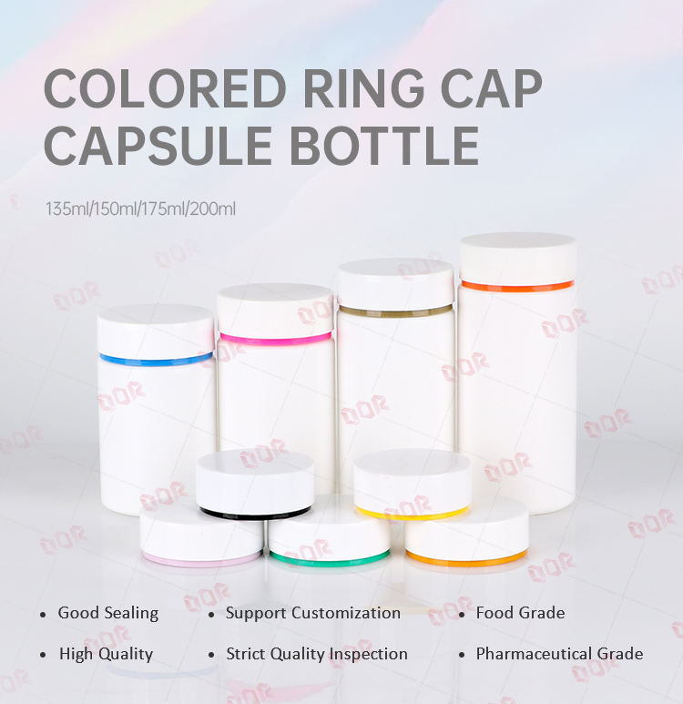 ขวดยาแคปซูลน้ำมันปลา HDPE สีขาว135มล. พร้อมรองรับการปรับแต่งสำหรับอาหารเสริม