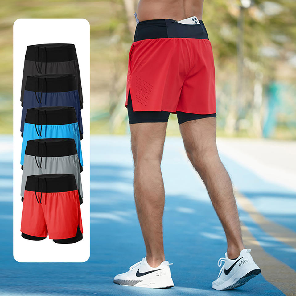กางเกงออกกำลังกายขาสั้นผู้ชายแบบ2 in 1สำหรับออกกำลังกายในยิมแห้งเร็วน้ำหนักเบา