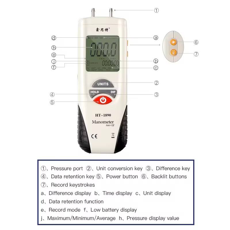 Hedao เครื่องวัดปริมาณออกซิเจน HT-1890 0.29% ฟุตสำหรับ H2O, PSI, Bar, mBar, kPa