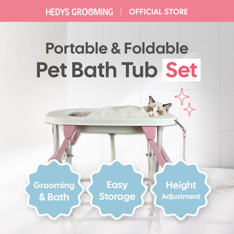 อ่างอาบน้ำสัตว์เลี้ยงปรับระดับได้ HEDYS GROOMING รุ่นโมเดิร์น แบบพกพา โครงสร้างพับได้ 3 ระดับความสูง แข็งแรง สำหรับสุนัข วัสดุ PP/อลูมิเนียม/PTE