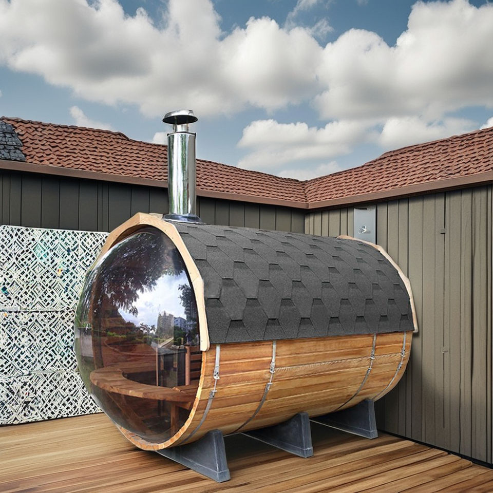Helius เตาไฟไม้กลางแจ้ง6คน, เตาไฟไม้ซีดาร์สีแดงสำหรับซาวน่าถังซาวน่าขนาดใหญ่พร้อมระเบียงและหน้าต่าง