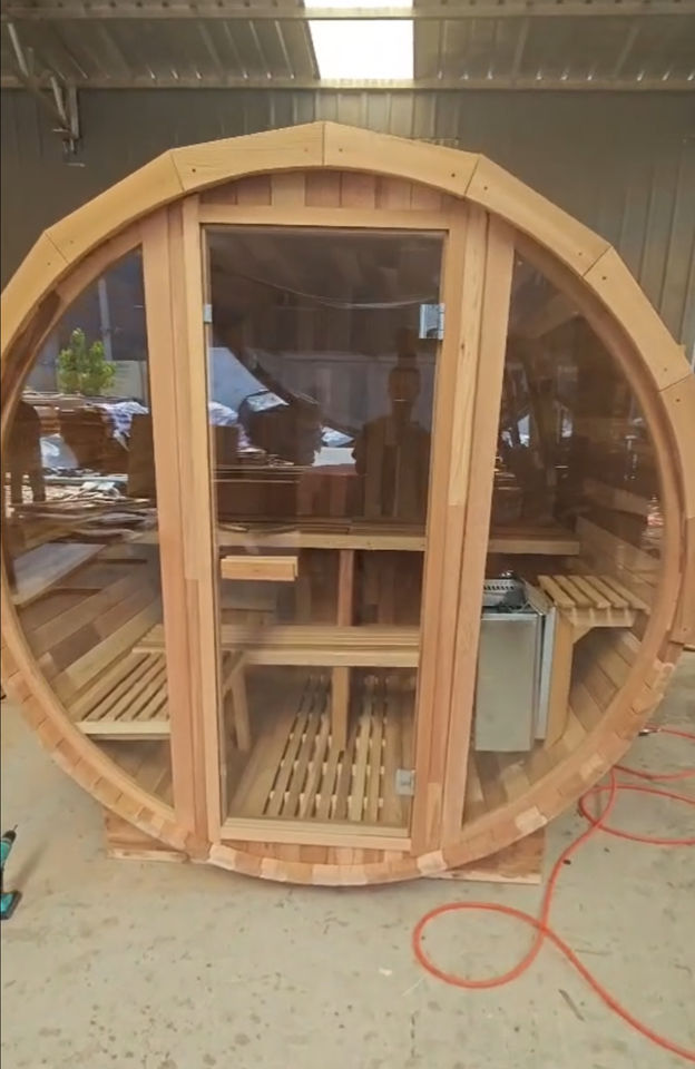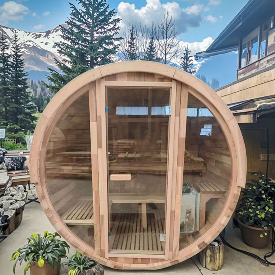 ห้องซาวน่าไม้ซีดาร์แท้สุดหรู HELIUS แบบดั้งเดิม อบไอน้ำ สำหรับ 2 คน กระจกสีน้ำตาลแบบพาโนรามา ขนาดใหญ่ สำหรับสปาเพื่อสุขภาพ