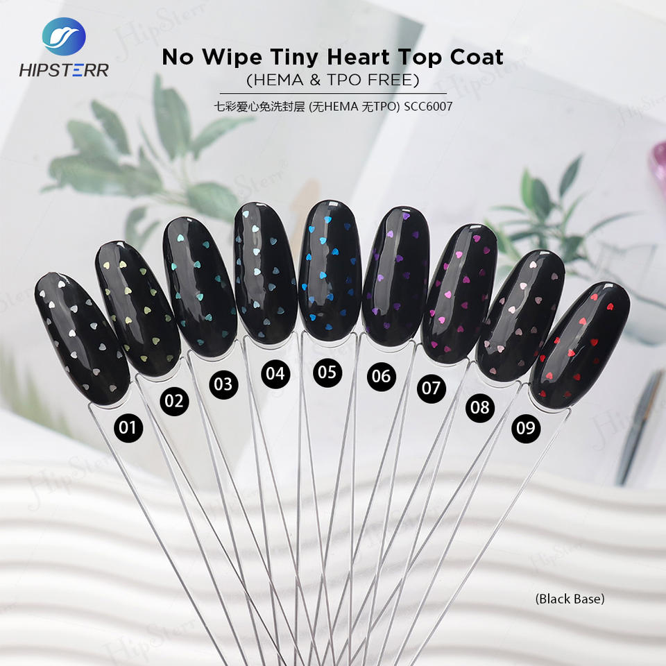 HEMA & TPO FREE ท็อปโค้ทรูปหัวใจเล็กๆ ไม่ต้องเช็ด ท็อปโค้ทใสประดับกลิตเตอร์รูปหัวใจ เจลทาเล็บแบบลอกออกได้ ติดทนนาน