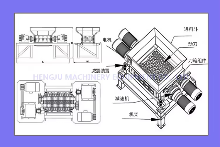 Hengju เครื่องทำลายล้อรถเพลาคู่อัตโนมัติ380V มอเตอร์ควบคุม180KW PLC ผลิตผงยาง
