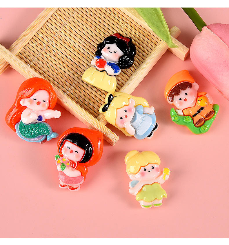 Hengxin ตุ๊กตาเรซินประดับด้วยกิ๊บติดผมสำหรับตกแต่งเคสโทรศัพท์ลายการ์ตูนเจ้าหญิงและเจ้าชายนางเงือก