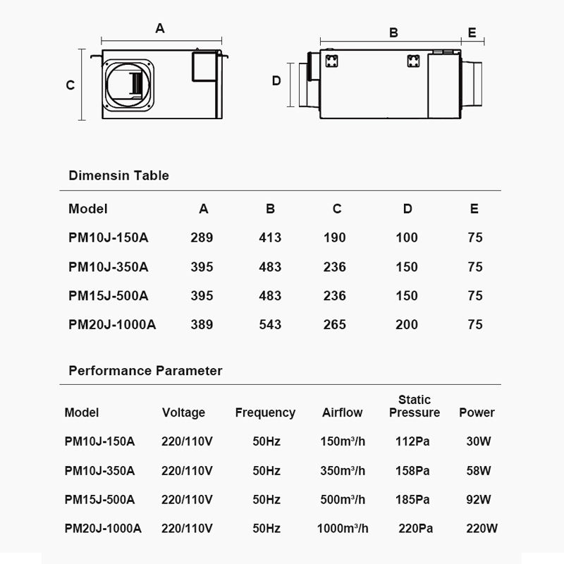 การไหลเวียนของอากาศ:1000m 3/ชม.