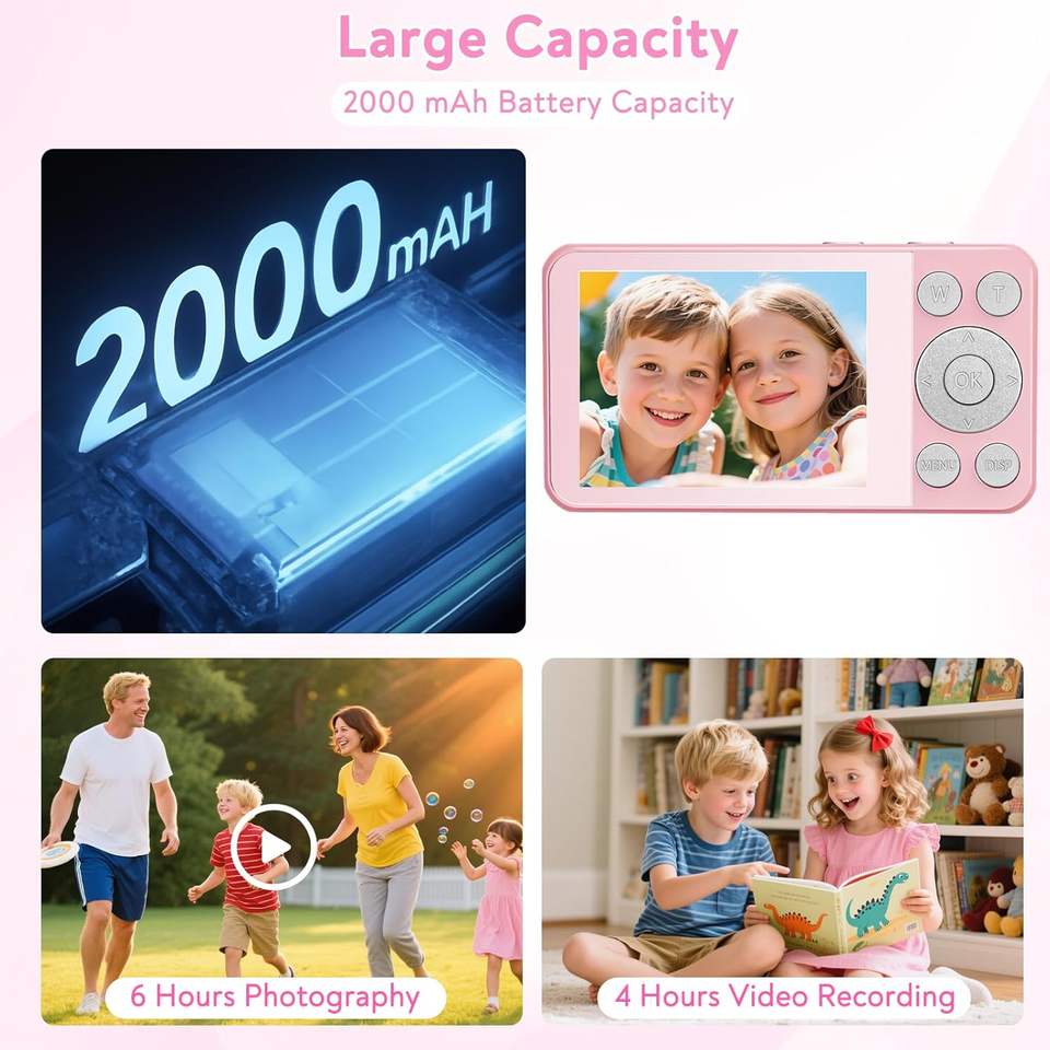 กล้องดิจิตอล HERBYD 64MP วิดีโอความละเอียด 1080P HD พร้อมการ์ด 32GB หน้าจอ IPS 2.8 นิ้ว ซูมดิจิตอล 18 เท่า ระบบป้องกันภาพสั่นไหว ดีไซน์คอวี สำหรับเด็กและวัยรุ่น