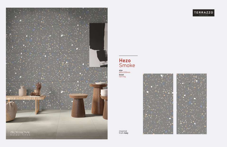 กระเบื้องพอร์ซเลนพรีเมียม HEZO SMOKE TERRAZZO ลายแกะสลัก