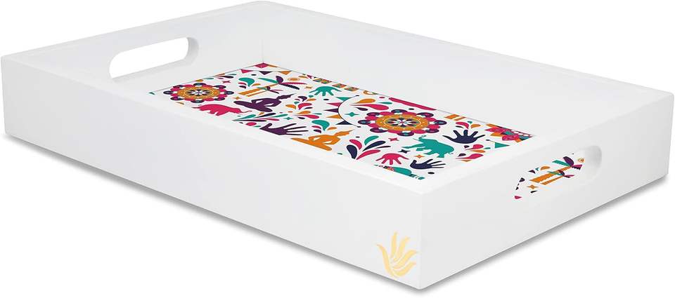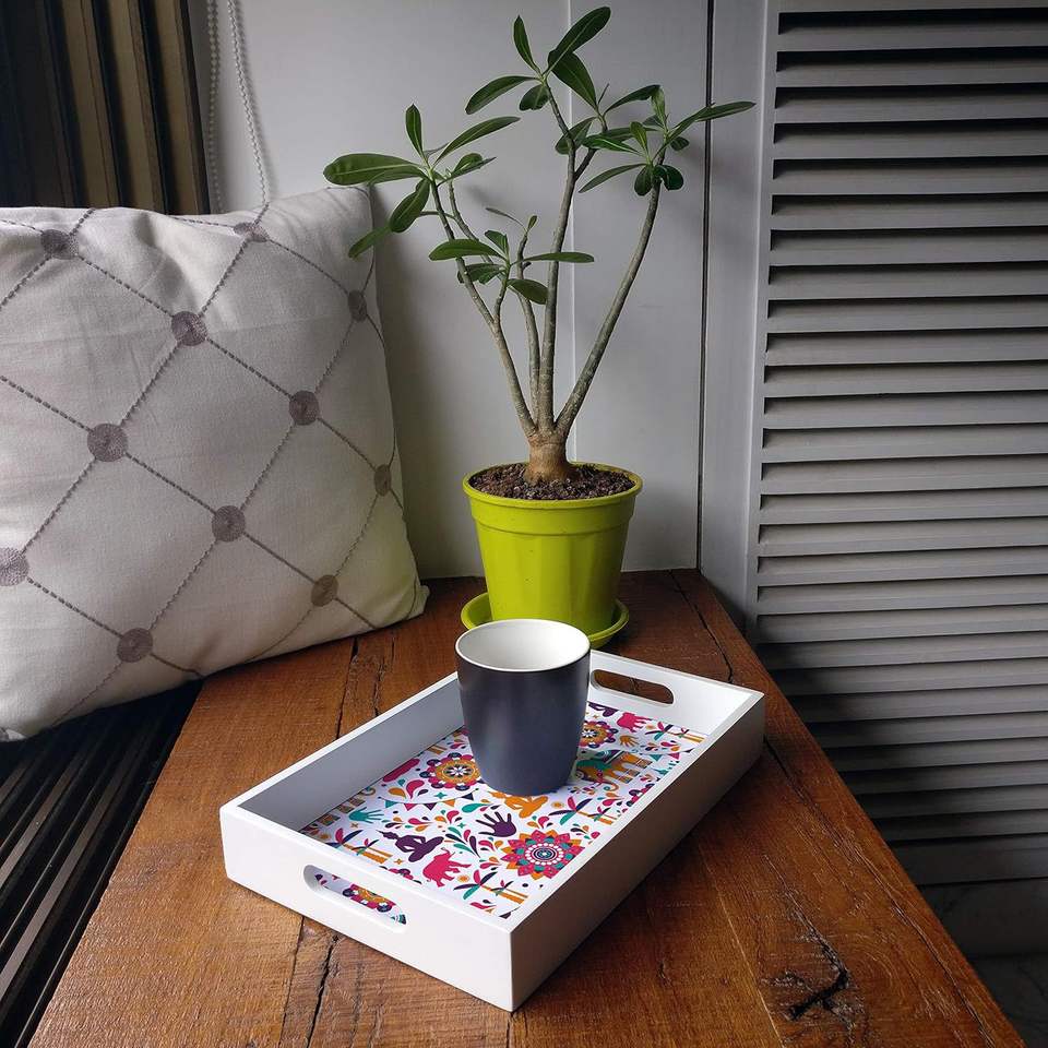 ถาดเสิร์ฟทำจากไม้ MDF ทรงสี่เหลี่ยมผืนผ้าสีฟ้าถาดตกแต่งบ้านเป็นมิตรกับสิ่งแวดล้อม