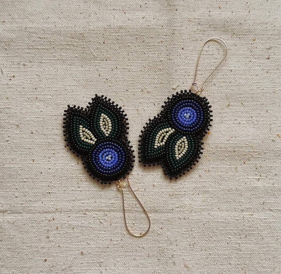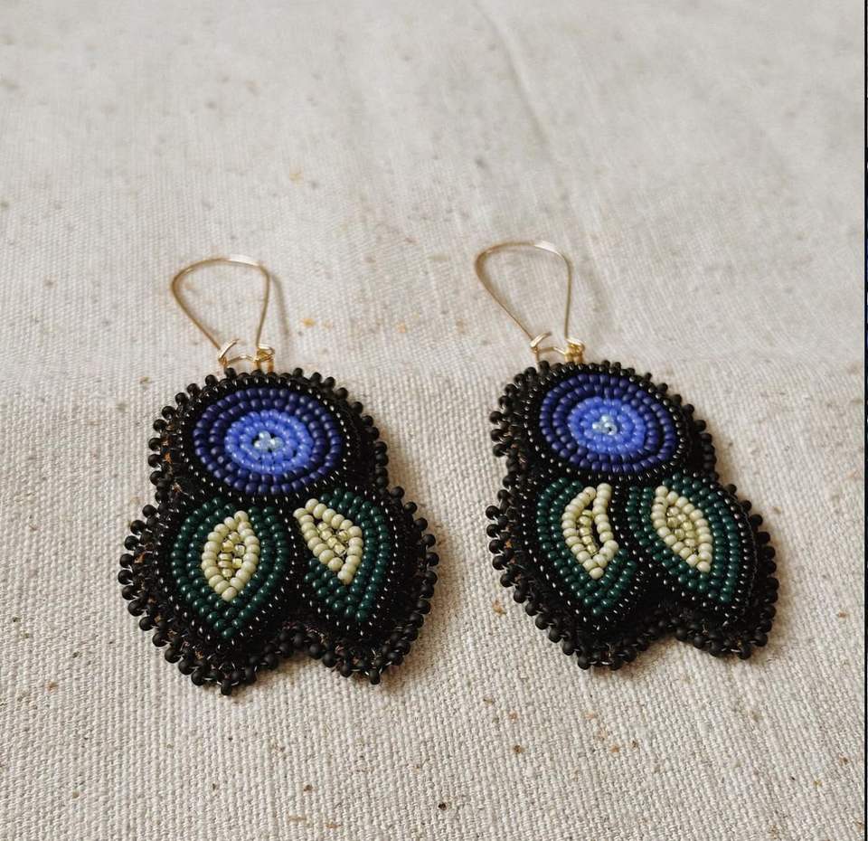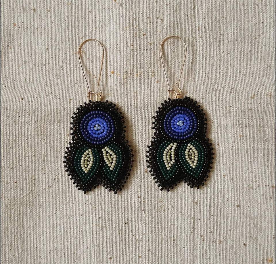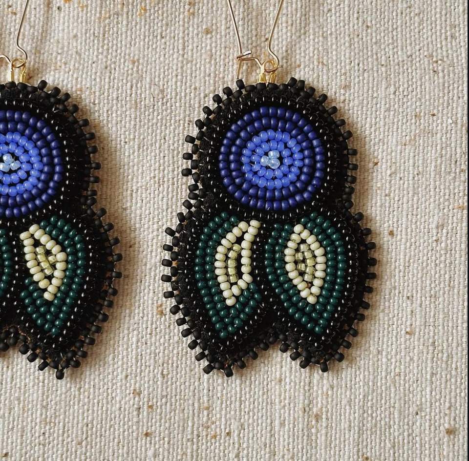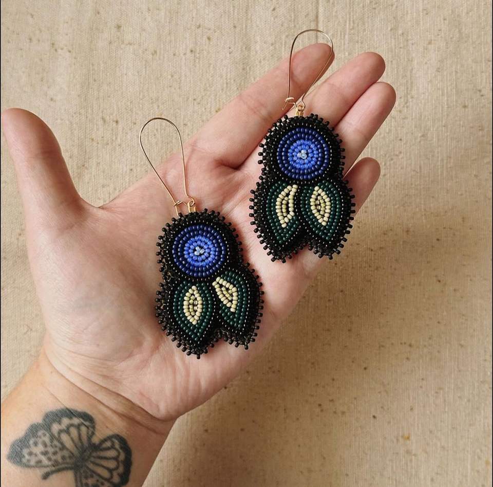 HF crafts' ใหม่สไตล์โบฮีเมียนสีรุ้งลูกปัดตุ้มหูแบบถักมือรูปหัวใจดีไซน์ลูกปัดข้าว