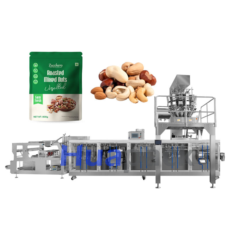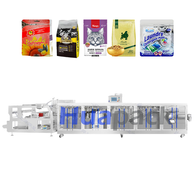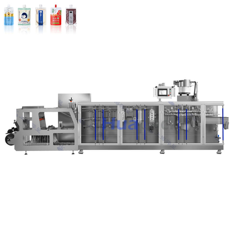 เครื่องบรรจุภัณฑ์แบบอัตโนมัติ HUAPACK HFFS สำหรับบรรจุภัณฑ์แบบ Doypack สำหรับแยม น้ำผลไม้ ซองฟิล์ม แบบฟอร์มฟิลล์ซีล พร้อมมอเตอร์ปั๊ม สำหรับอาหารและเครื่องดื่ม คุณภาพสูง