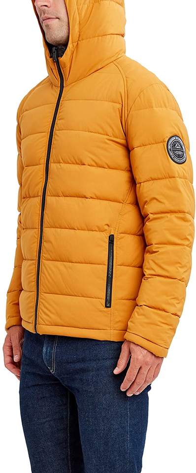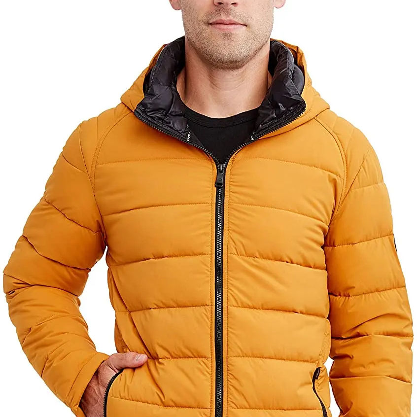 เสื้อแจ็คเก็ตพัฟเฟอร์ผู้ชาย น้ำหนักเบา เป็นมิตรกับสิ่งแวดล้อม ผ้าทึบ มีฮู้ด กันน้ำ กันลม ไซส์ XXL บวก ระบายอากาศได้ดี พิมพ์โลโก้ สำหรับฤดูหนาว