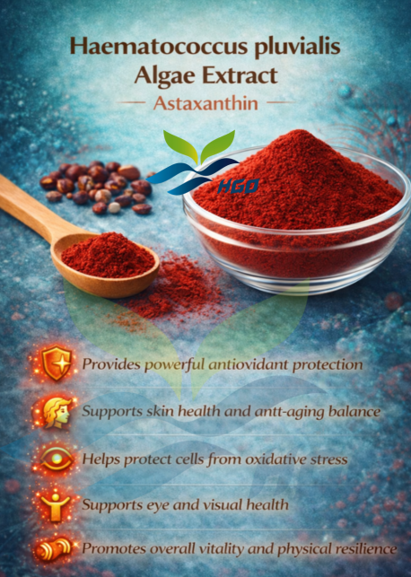 โรงงาน HGO จัดจำหน่ายโดยตรง สารสกัดจากสาหร่ายเฮมาโตคอคคัส พ্লูวิอาลิส ธรรมชาติ เกรดอาหาร แอสตาแซนธิน 1%-5% สารสกัดมาตรฐาน