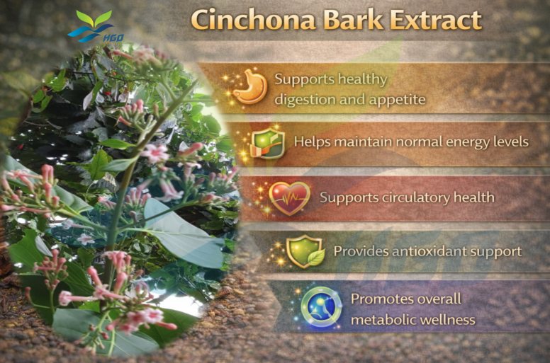 โรงงาน HGO จัดจำหน่ายสารสกัดจากเปลือกสนชินโคนาบริสุทธิ์จากธรรมชาติ คุณภาพสำหรับอาหาร สเปคสัดส่วนสารสกัด 5:1 10:1 20:1