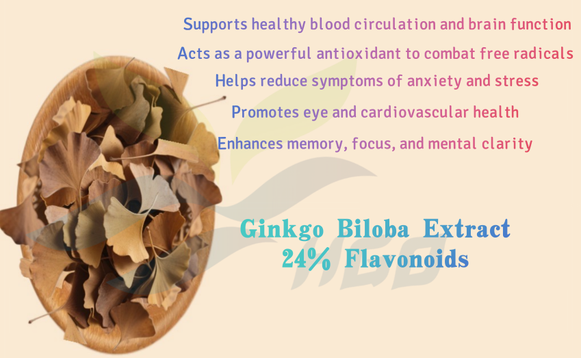 Hgo สารสกัดจากแปะก๊วยบริสุทธิ์จากธรรมชาติ (เกรดอาหารเพื่อสุขภาพ) 24% ฟลาโวนอยด์ (สารสกัดมาตรฐาน)