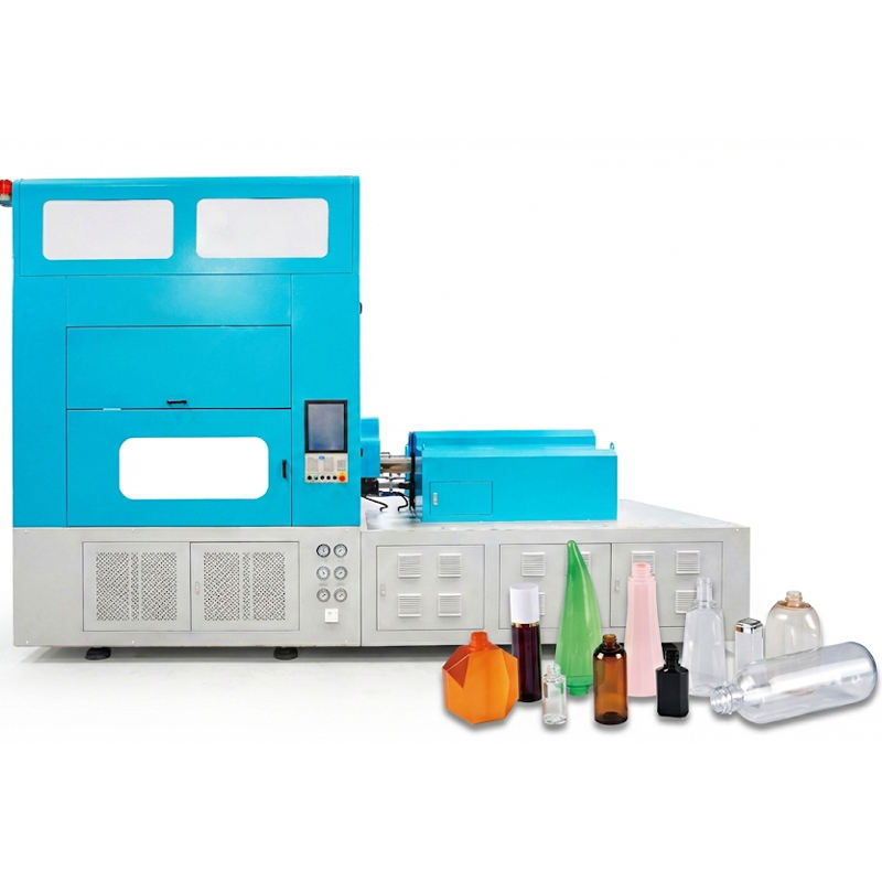 เครื่องขึ้นรูปขวดพลาสติกแบบฉีดขึ้นรูปและยืดขึ้นรูปในขั้นตอนเดียว HGY250-V4-B ความจุสูง แบบสองแถว สำหรับขวดเครื่องสำอางและบรรจุภัณฑ์อาหาร วัสดุ PVC/PS
