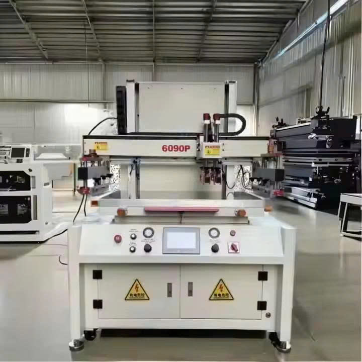 เครื่องพิมพ์หน้าจอแบบแท่นแบนอัตโนมัติแบบ HH-6090P ควบคุมหน้าจอสัมผัสสำหรับ500x800มม. พื้นผิวเรียบสำหรับการพิมพ์แผ่นโลหะกระดาษพลาสติก
