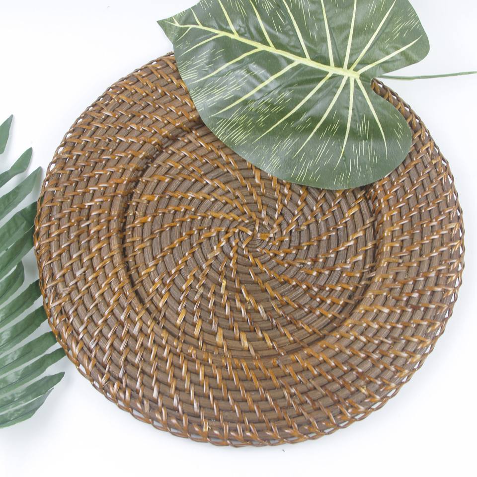 HH HHW-007จานชาร์จแบบปรับได้หรูหราแผ่นรองจานไม้ไผ่ธรรมชาติขนาดเส้นผ่านศูนย์กลาง300มม.