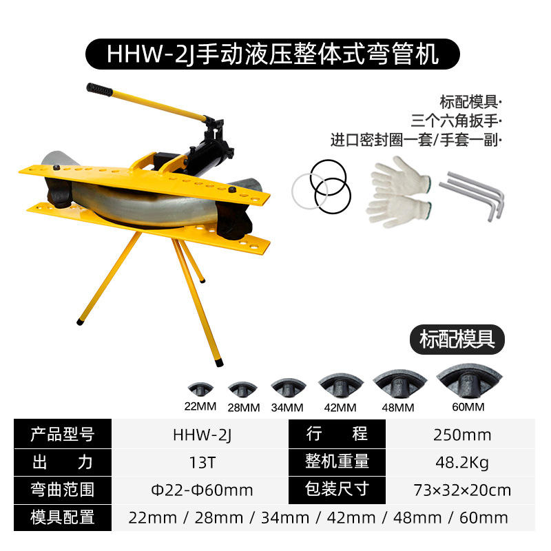 เครื่องดัดท่อไฮดรอลิกแบบแมนนวล รุ่น HHW-2345J สำหรับท่อเหล็กชุบสังกะสีและท่อเหล็กไร้รอยต่อ พร้อมขาตั้งและอุปกรณ์