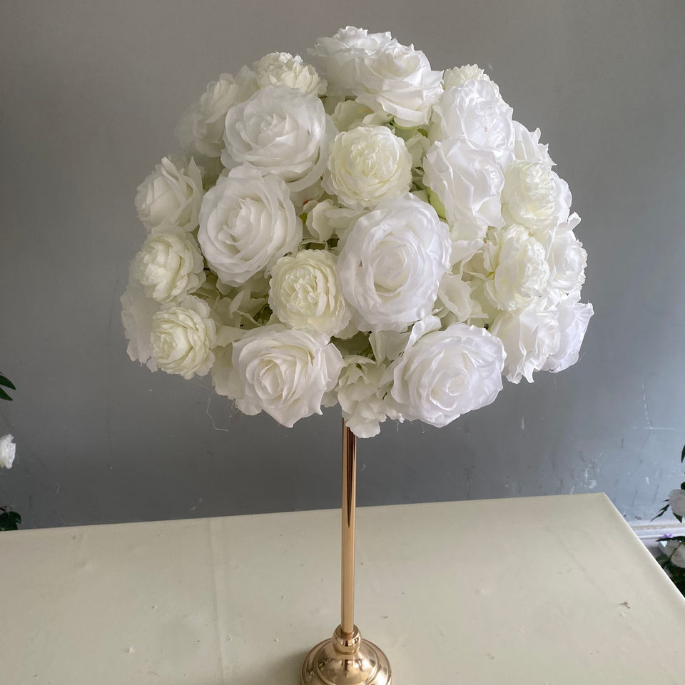 ลูกบอลดอกไม้ปลอมสำหรับประดับกลางโต๊ะลูกบอลดอกไม้สีขาวสำหรับงานแต่งงานลูกบอลดอกไม้50ซม. ของตกแต่ง HI-FB001