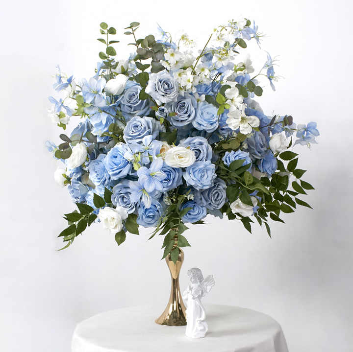 ลูกบอลดอกไม้ปลอมขนาด50ซม. ทำจากผ้าไหมประดับกลางโต๊ะงานแต่งงานลูกบอลดอกไม้สีฟ้าประดิษฐ์สำหรับงานแต่งงานใน HI-FC036