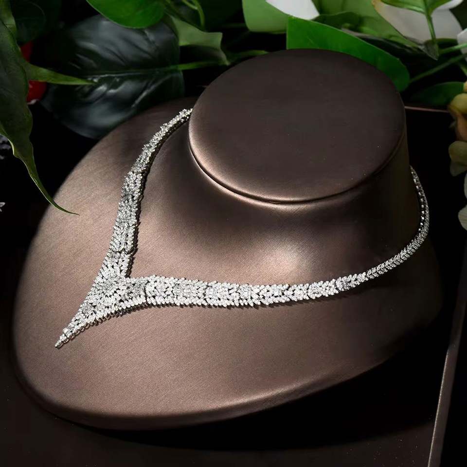 ชุดเครื่องประดับเจ้าสาวเจ้าสาวแบบแอฟริกันสำหรับผู้หญิงชุดสร้อยคอและต่างหูทรงลูกบาศก์เซอร์โคเนียชุดครบรอบปาร์ตี้ S-039