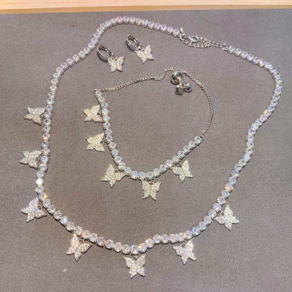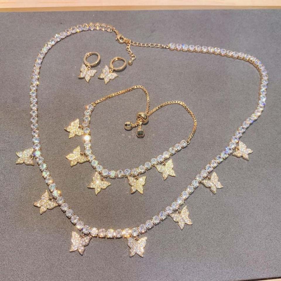 สร้อยคอโชกเกอร์โซ่ร้อยจี้รูปผีเสื้อ hibrida ชุดเครื่องประดับฮิปฮอปประดับเพชรคิวบิกเซอร์โคเนีย N-1414