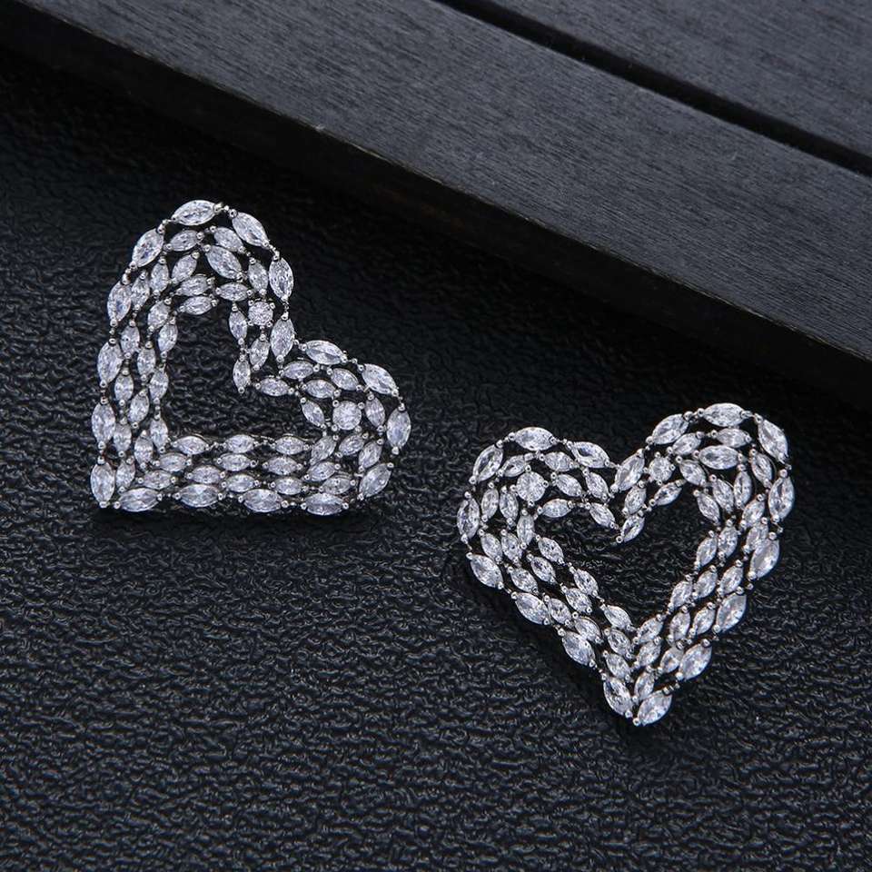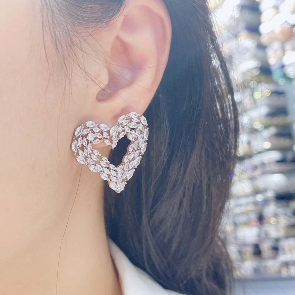 Hibide ต่างหูสตั๊ดรูปหัวใจขนาดใหญ่สำหรับผู้หญิงเครื่องประดับเจ้าสาว E-1128