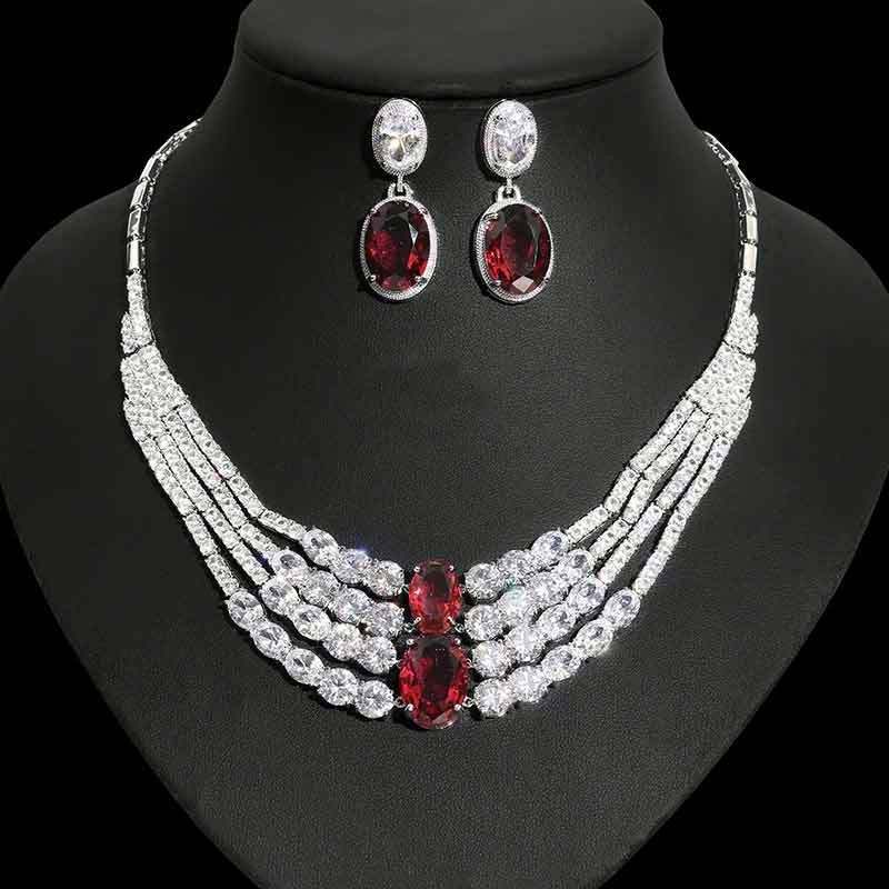 HIBRIDE Delicate White Gold Color Round Cubic Zirconia Wedding Necklace Earring Set Women Bridal Fashion Jewelry Sets N-1220