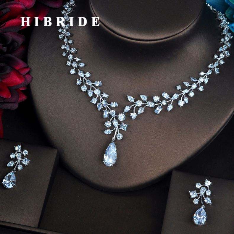 Hibide ชุดเครื่องประดับสำหรับเจ้าสาวของผู้หญิงทรงลูกบาศก์หรูหราชุดสร้อยคอเครื่องประดับสำหรับชุดแต่งงานของขวัญขายส่ง N-427