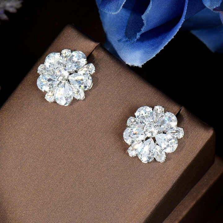 Hibide ต่างหูเพชรสังเคราะห์สีขาวลายใบไม้หรูหราสำหรับผู้หญิงชุดต่างหูเม็ดเดี่ยวหมั้นหมายงานปาร์ตี้งานหมั้น E-702