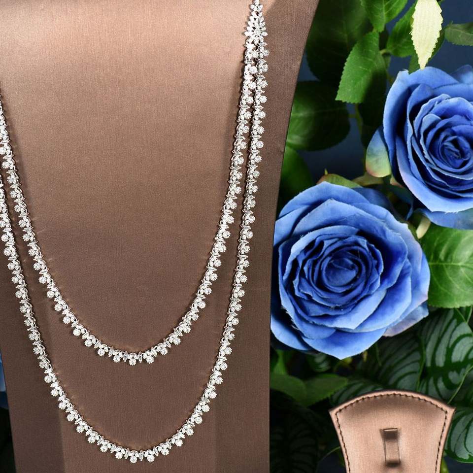 Hibide สร้อยคอโซ่ยาวคริสตัลเพทายทรงลูกบาศก์สีขาวสวยงดงามและต่างหูสำหรับผู้หญิงเสื้อกันหนาวเครื่องแต่งกายเครื่องประดับ N-675