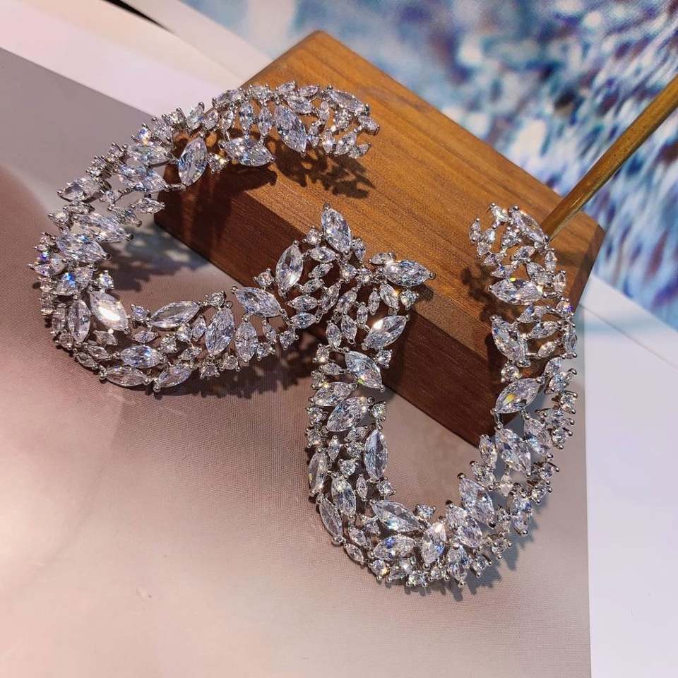 Hibride ตะขอดอกไม้แฟชั่นสีขาวลูกบาศก์เซอร์โคเนียสำหรับผู้หญิงชุดหมั้นงานแต่งงานต่างหูสตั๊ด E-689 Bijoux Femme