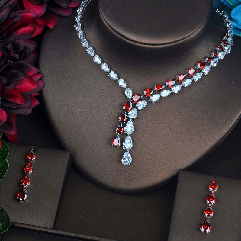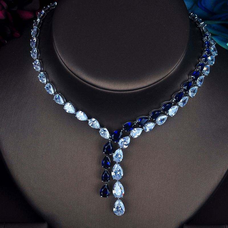 HiBride ชุดเครื่องประดับหยดน้ำสีฟ้าใสหรูหราสำหรับผู้หญิงชุดสร้อยคอชุดแต่งงานราคาขายส่ง N-388